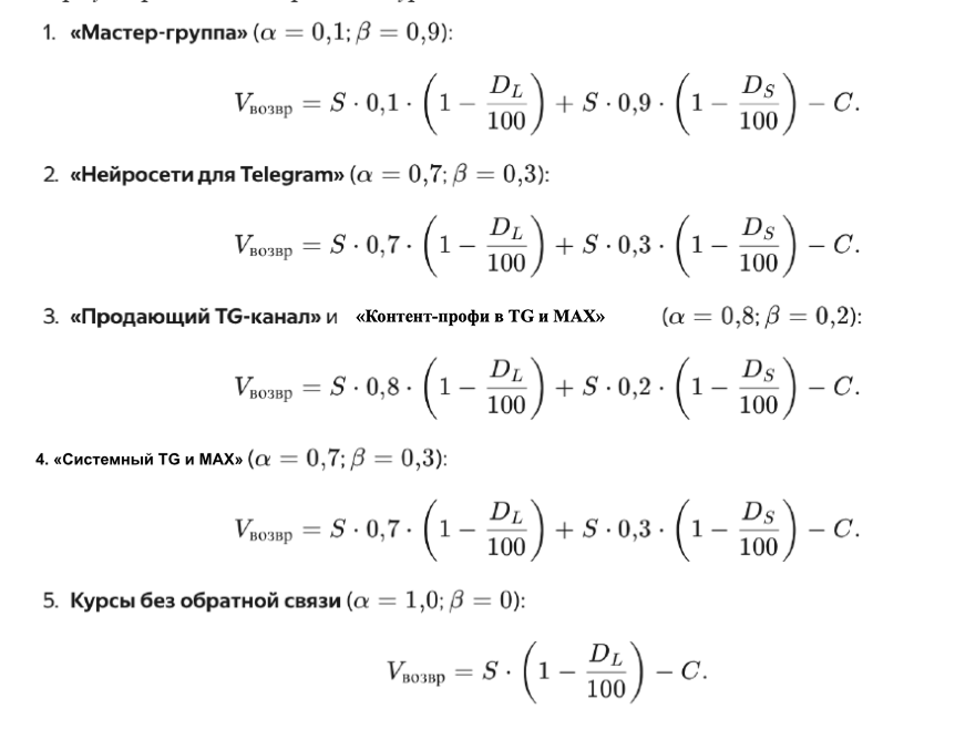 Порядок расчёта суммы возврат производится по формулам с учетом данного пункта, а также в соответствии с условиями Тарифа на Курс и отражен в Приложении № 1к Оферте.